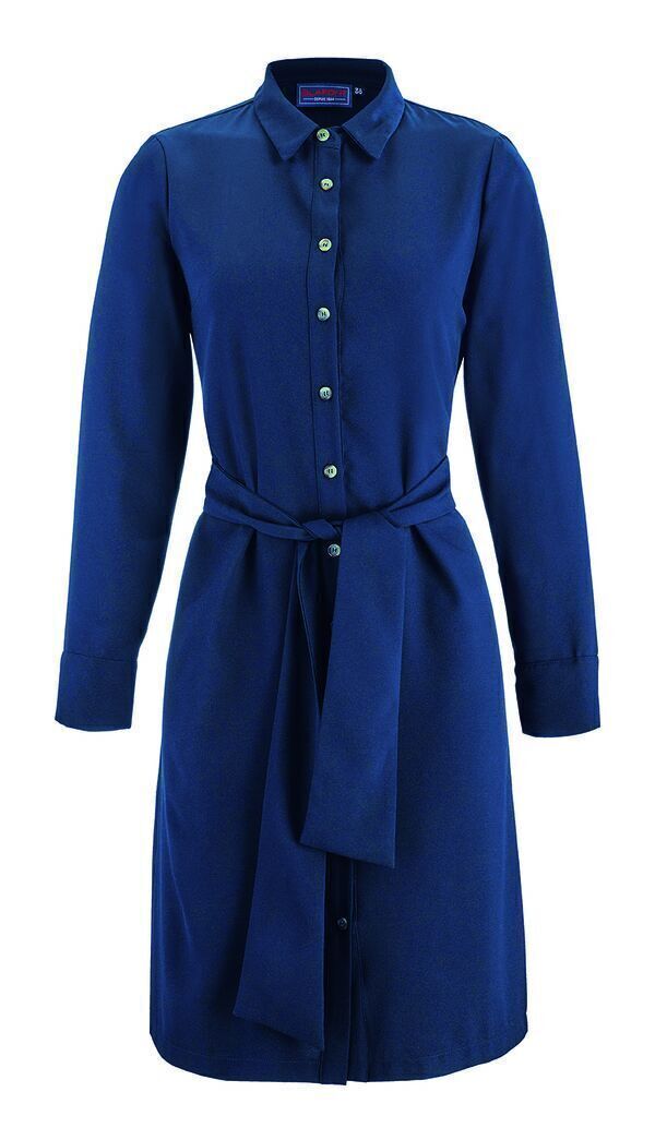 Robe chemise ceinturée. Fermeture milieu devant par patte