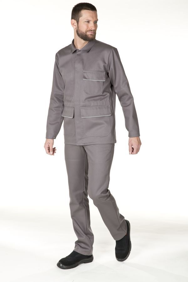 Pantalon ceinture élastiquée côtés fermée par bouton. Braguette fermée par zip. 2 poches italiennes ouvertures invisibles. Poche arrière à rabat fermée par bouton-pression. Renfort intérieur tissu plaqué sur devant cuisse. | Traitement ignifuge. E.J. : 82 cm.