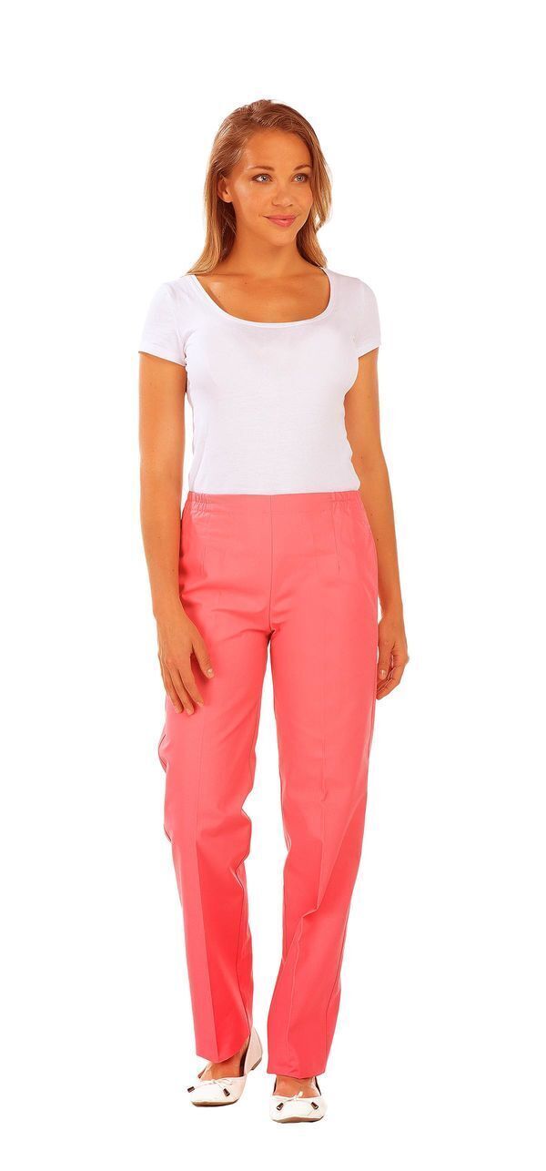 Pantalon femme. Taille semi-élastiquée effet ventre plat. 2 poches italiennes. E.J. : 82 cm.