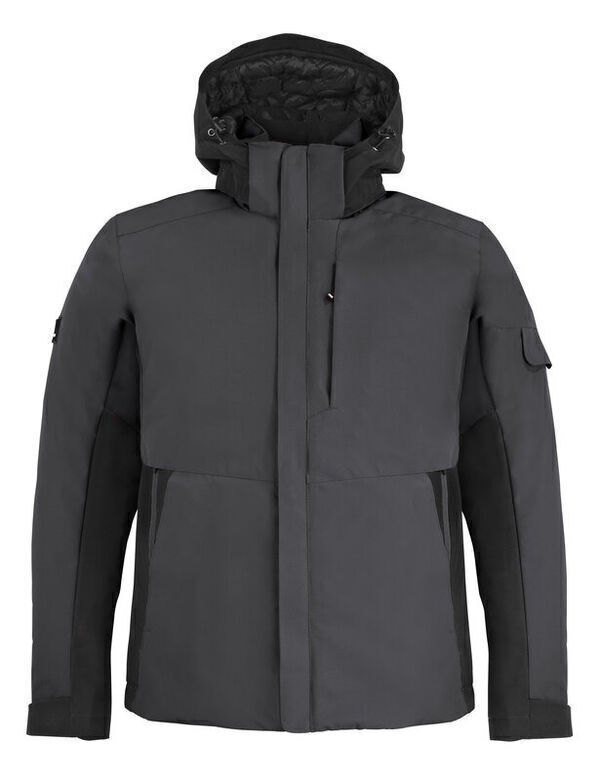 élastiqués. Fermeture zippée sous rabat auto-agrippantes. Poche poitrine zippée à l'intérieur. 2 poches côtés zippées. 2 poches intérieure zippée cachées sous rabat. Taille réglable par cordon. Manches