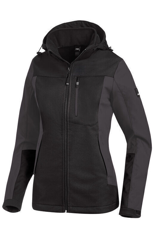 Veste softshell bicolore femme. Capuche ajustable, amovible. Fermeture milieu devant zippée avec protège menton. 2 poches basses zippées dans la découpe. Poche poitrine zippée. Manches longues avec poignets ajustables par pattes auto-agrippantes. 1 poche intérieure ouverte et 1 autre zippée. Détails rétroréfléchissants sur les avant-bras. Coupe ajustée. Imperméabilité et respirabilité 10K/5K