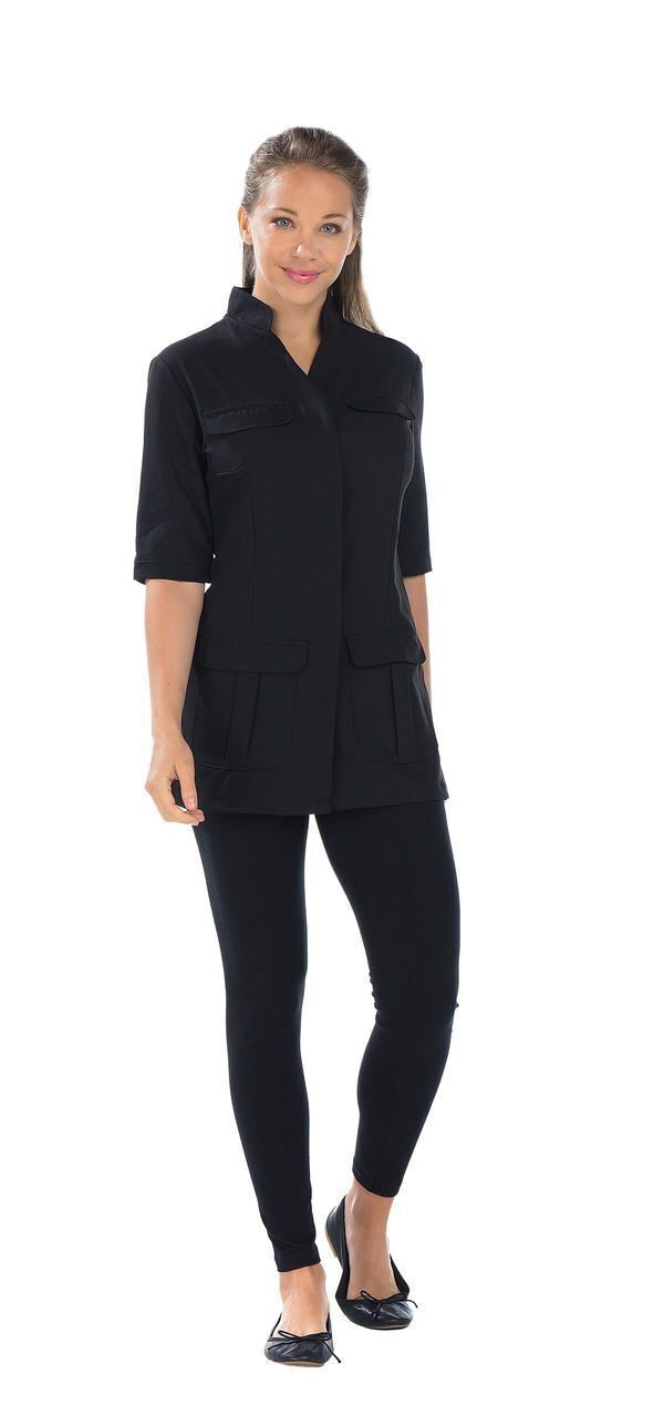 Tunique à col officier. Fermeture asymétrique par boutons-pression
